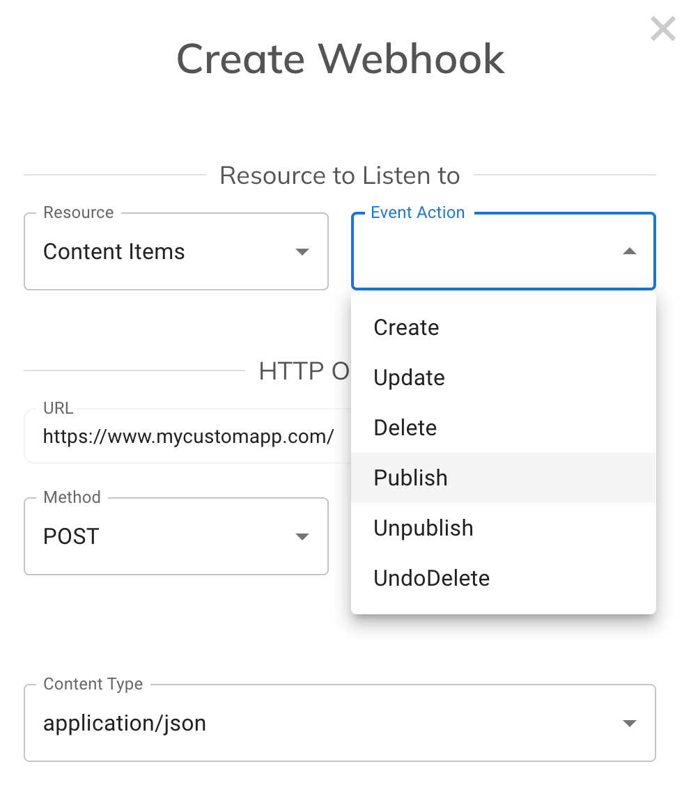 When events happen, Content.One searches for the most specific webhook match and fires the associated payload: